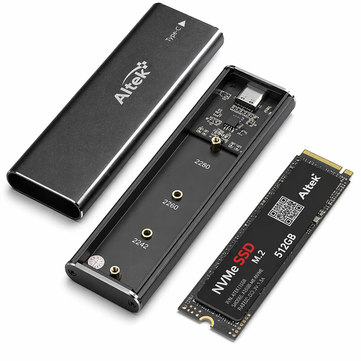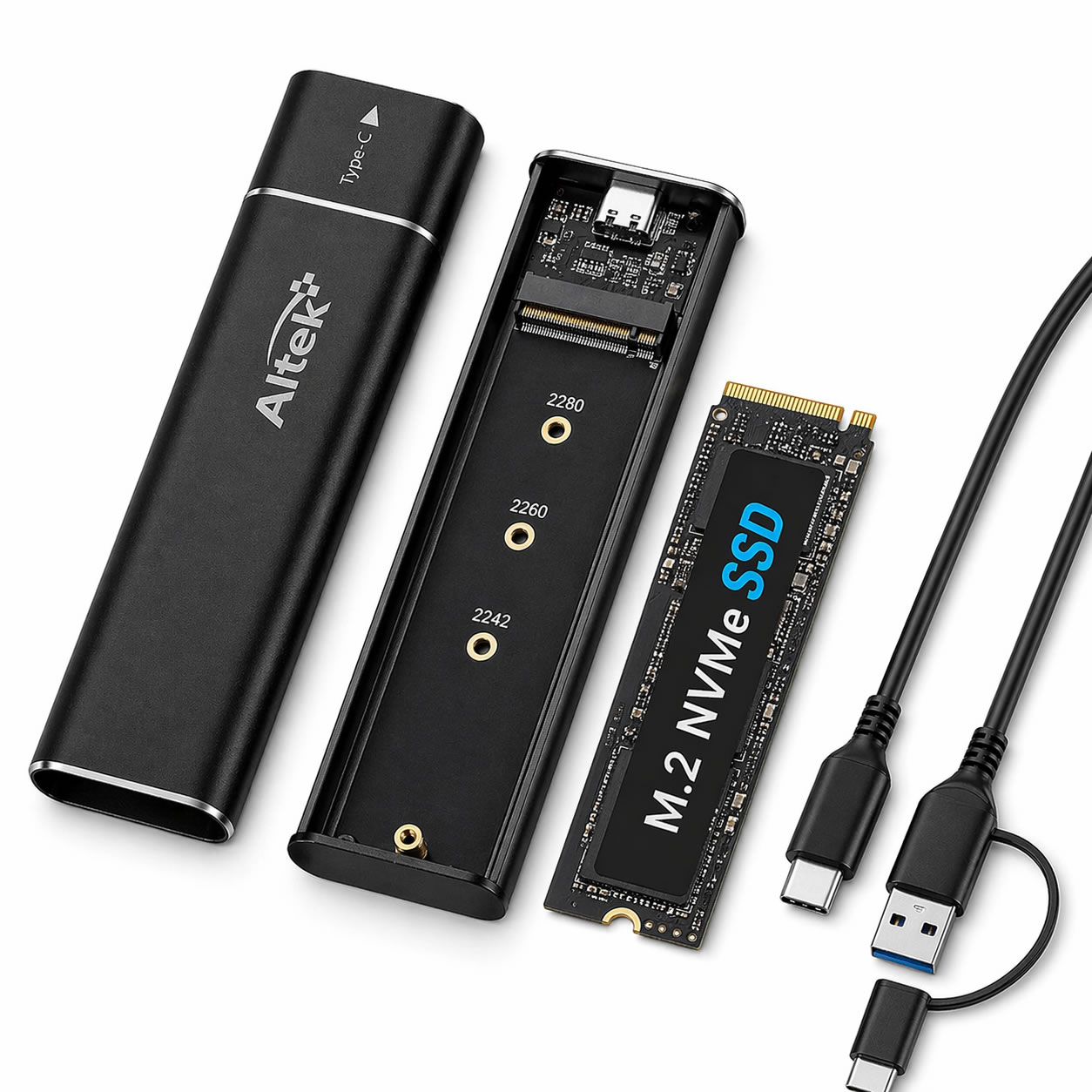 Capsula Altek P/SSD M.2 NVMe Externo 10Gbps USB-C 3.1 + adaptador USB-A