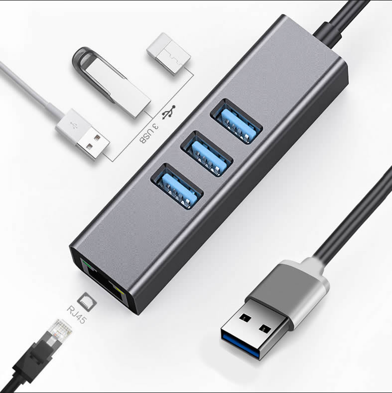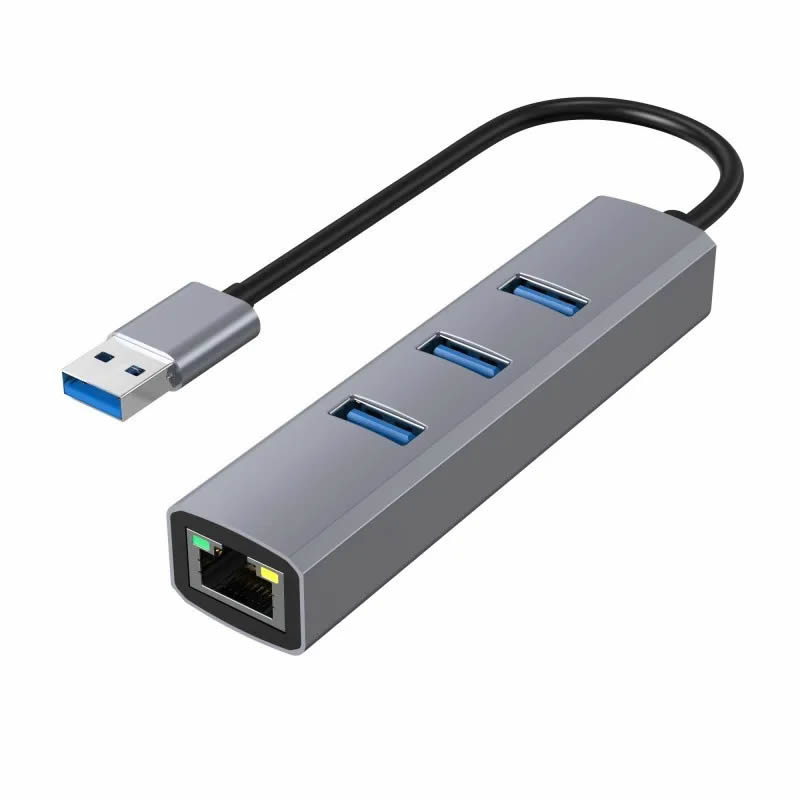 Optimiza la conectividad de tu computadora con este adaptador USB 3.0 que combina un hub de 3 puertos USB y un puerto Ethernet Gigabit en un solo dispositivo compacto. Es la solución ideal para equipos con puertos limitados o para reemplazar una tarjeta de red dañada sin necesidad de abrir la computadora.
